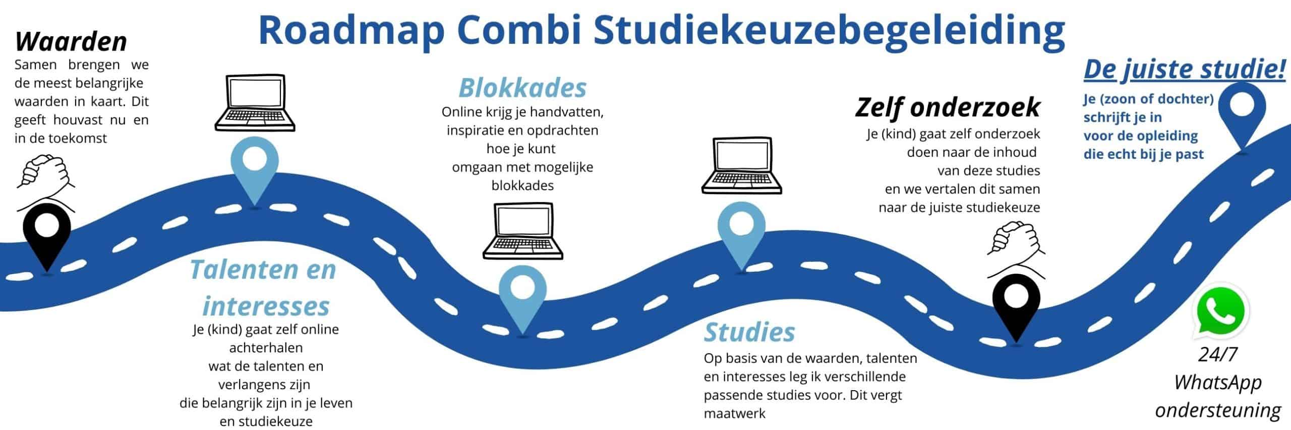 Hiernaast vindt je de visuele route via het combinatie studiekeuze begeleidingstraject.